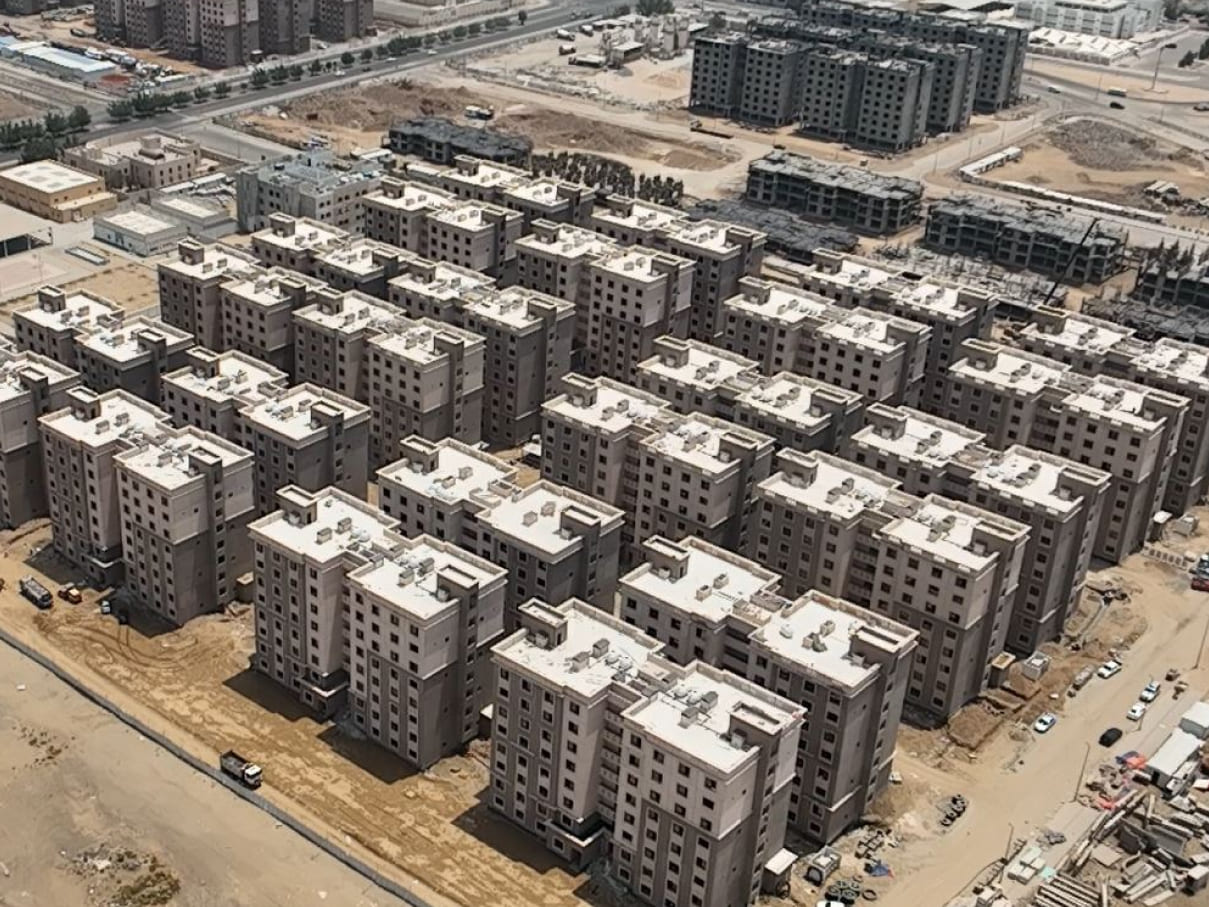 60 مبنى، كل مبنى يتكون من 8 طوابق تحتوي على وحدات دوبلكس